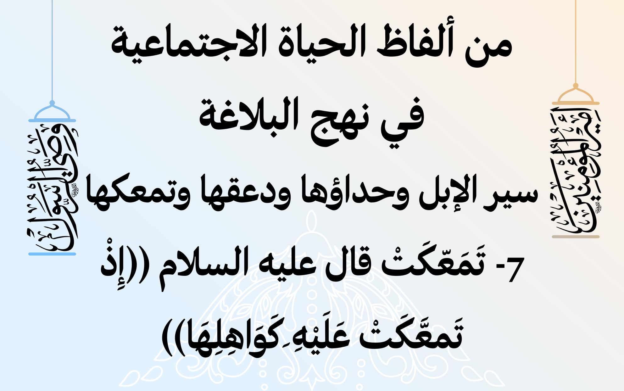من ألفاظ الحياة الاجتماعية في نهج البلاغة سير الإبل وحداؤها ودعقها وتم ...