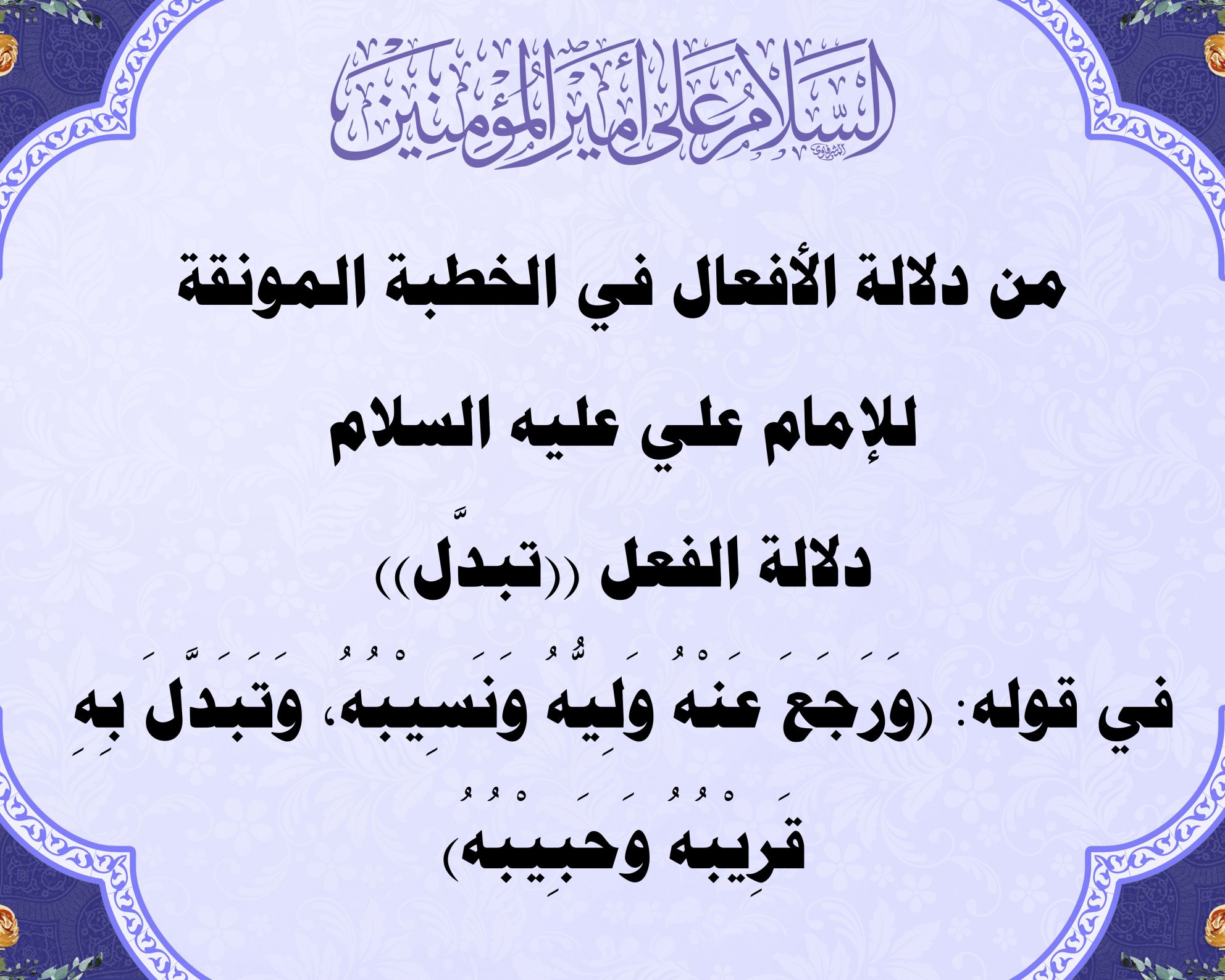 من دلالة الأفعال في الخطبة المونقة للإمام علي عليه السلام دلالة الفعل ...