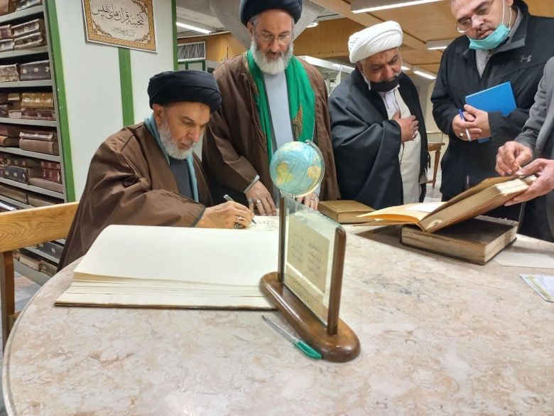 تشرف وفد العتبة الحسينية المقدسة الذي يتراسه السيد نبيل الحسني بالتبرك برؤية المصحف المنسوب بخط الامام علي (عليه السلام) جاء ذلك خلال زيارة الوفد لأقسام المكتبة الرضوية المقدسة في مدينة مشهد خصوصا قسم المخطوطات الذي تتواجد فيها اقدم المخطوطات في العالم فالمصحف المخزون في قسم المخطوط لا يكشف عنه الا في حالات نادرة ولشخصيات محدودة وقد منحت المكتبة الرضوية هذا الشرف للوفد تثمينا لدعم العتبة الحسينية المقدسة من خلال التواصل معها وتزويدها بالإصدارات الجديدة وشملت جولة الوفد في الاقسام اللقاء بمدير المكتبة واعضاء الهيئة الادارية والعلمية.