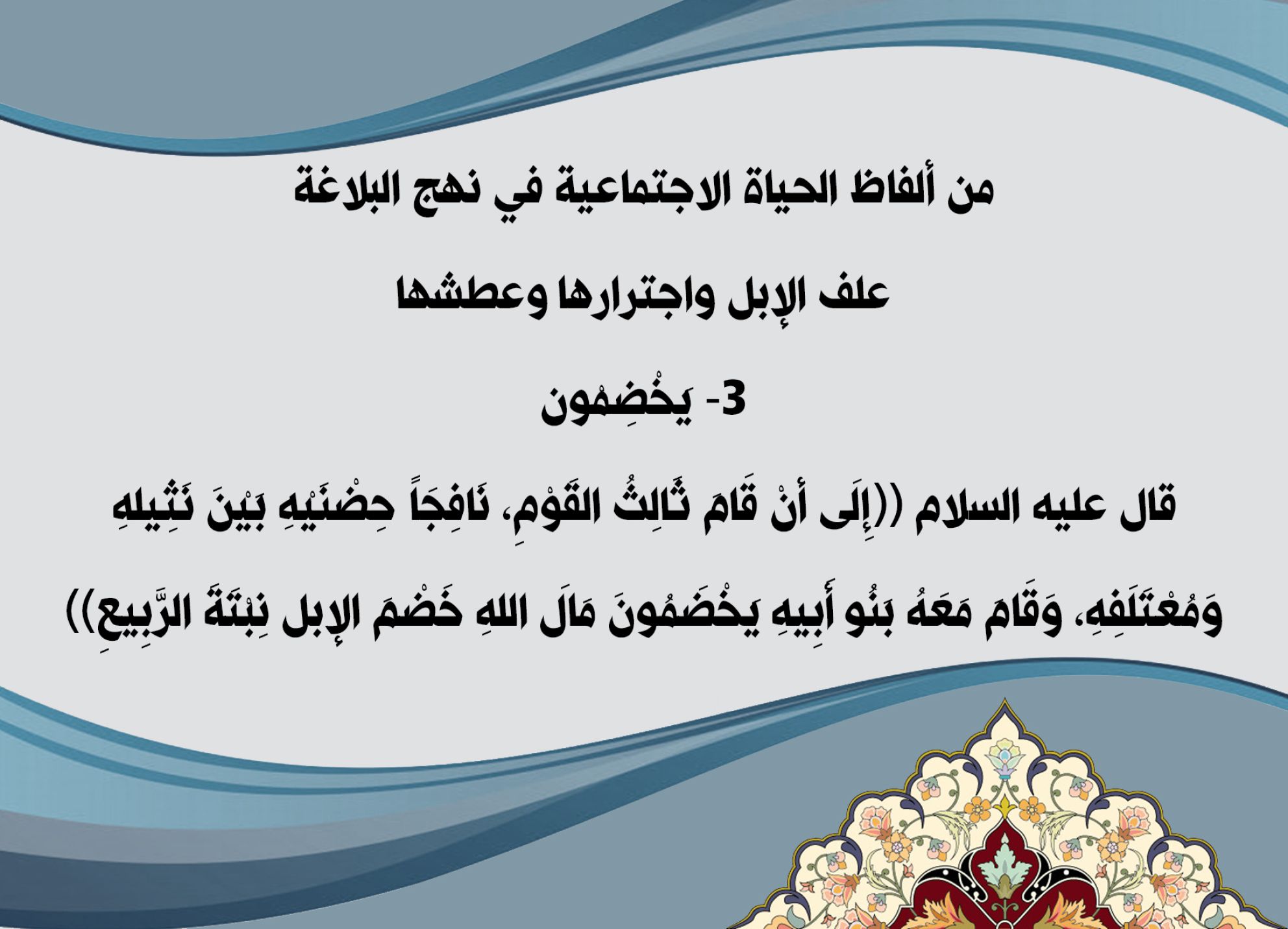 3- يَخْضِمْون/ قال عليه السلام ((إِلَى أنْ قَامَ ثَالِثُ القَوْمِ، نَافِجَاً حِض ...