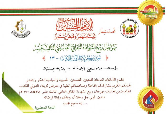 تثمينا للمشاركة الفاعلة لمؤسسة علوم نهج البلاغة التابعة للعتبة الحسينية المقدسة ...