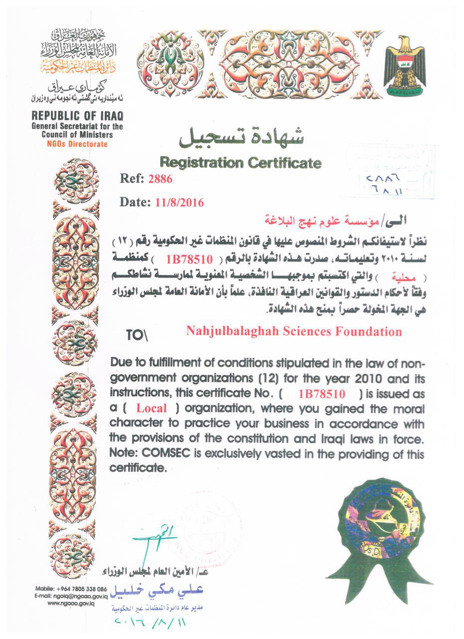حصلت مؤسسة علوم نهج البلاغة -بفضل الله- على اجازة التسجيل في دائرة المنظمات غير ...