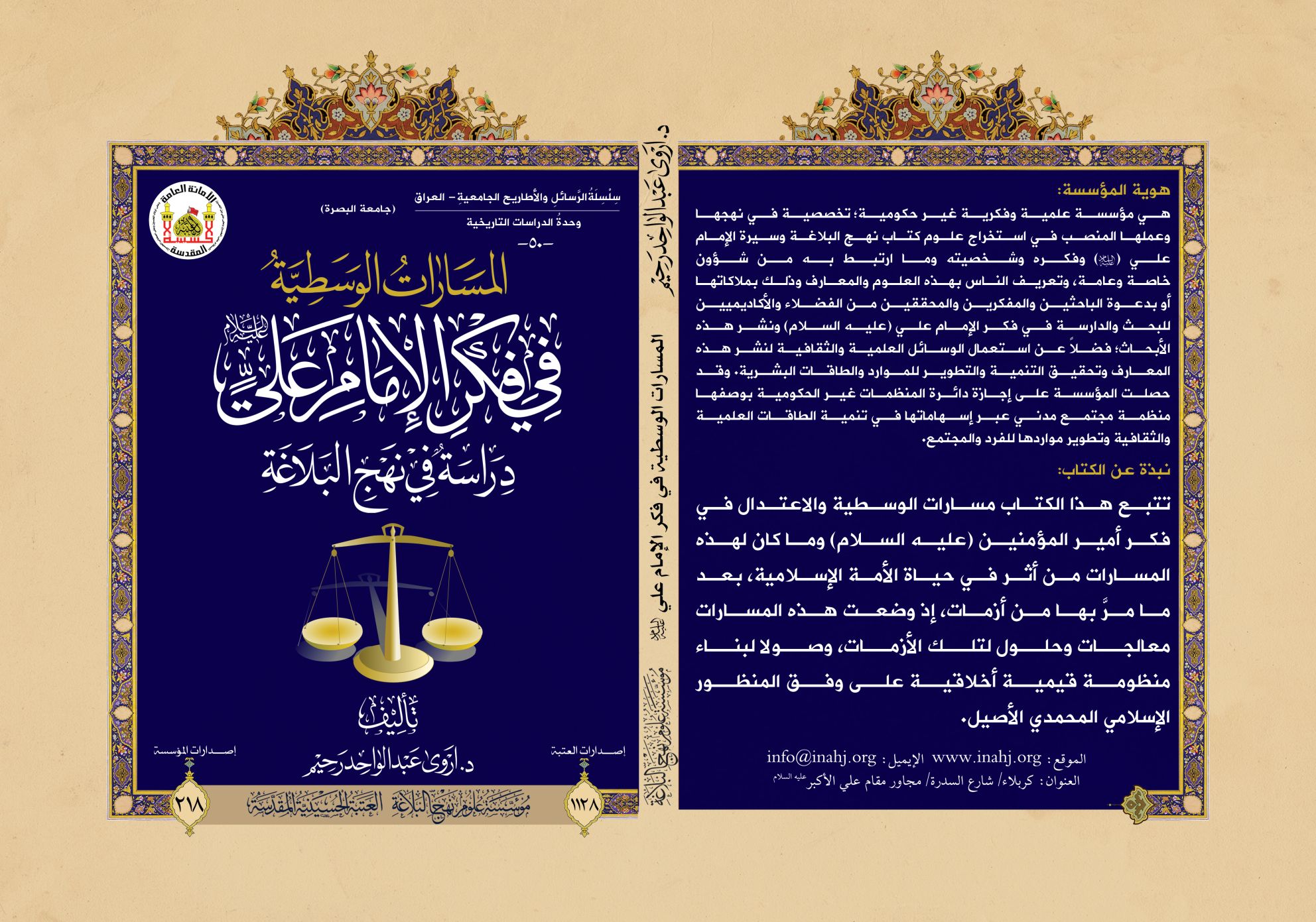 نبذة عن الكتاب: تتبع هذا الكتاب مسارات الوسطية والاعتدال في فكر أمير المؤمنين ( ...