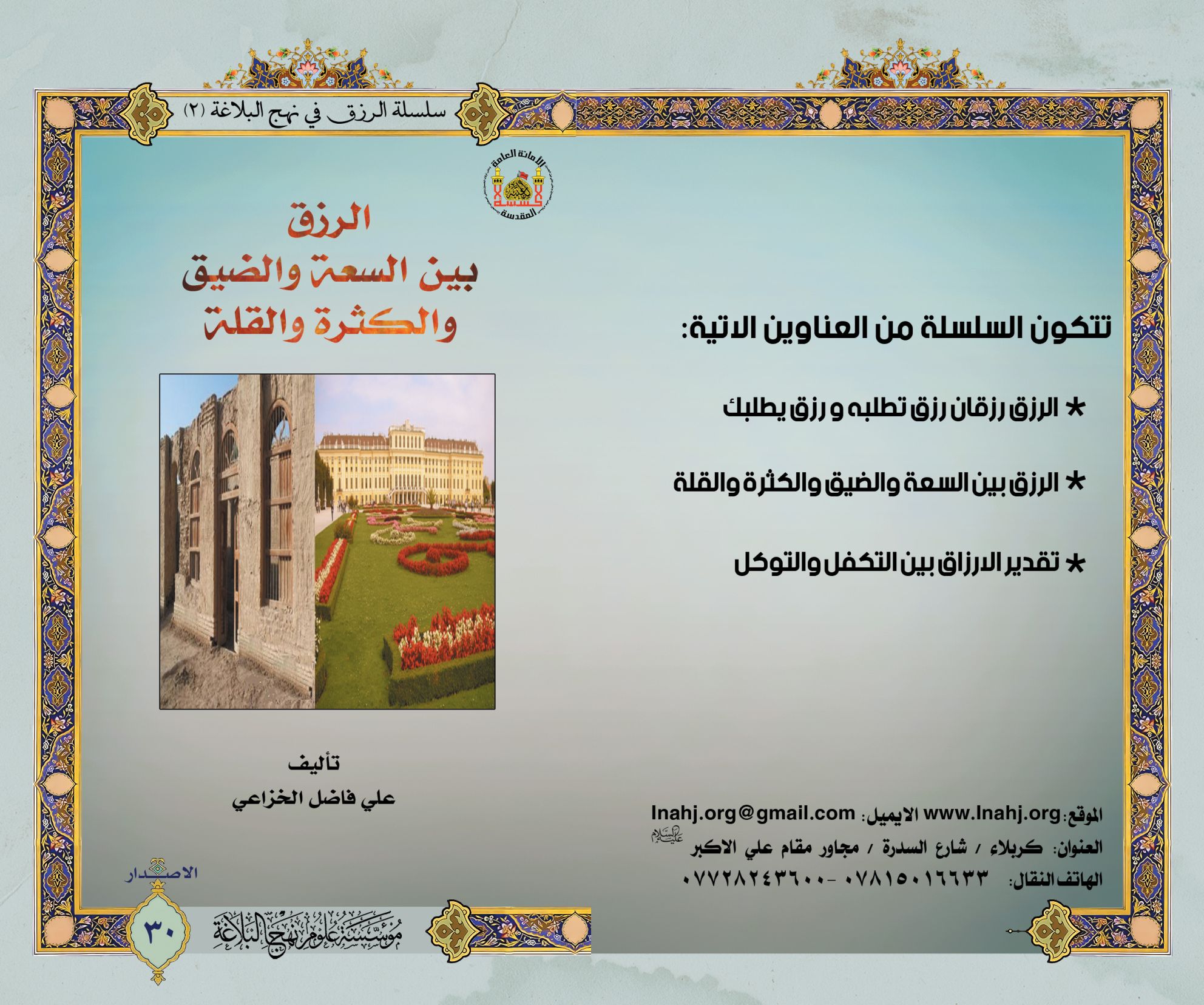 يتقصى هذا الكتاب موضوع سعة الرزق وضيقه وكثرته وقلته في نهج البلاغة، والحكمة الكا ...