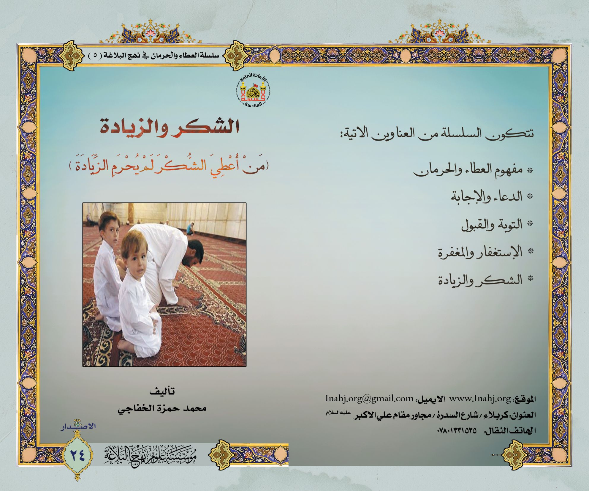 يتناول هذا الكتاب فريضة الشكر في نهج البلاغة، إذ يعد الشكر الاعتراف بالنعمة ومقا ...