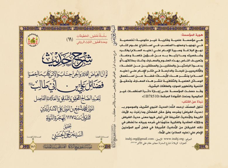 ضمن مشروعها التحقيقي مؤسسة علوم نهج البلاغة تضع بين يدي القارئ مخطوطة محققة. سع ...