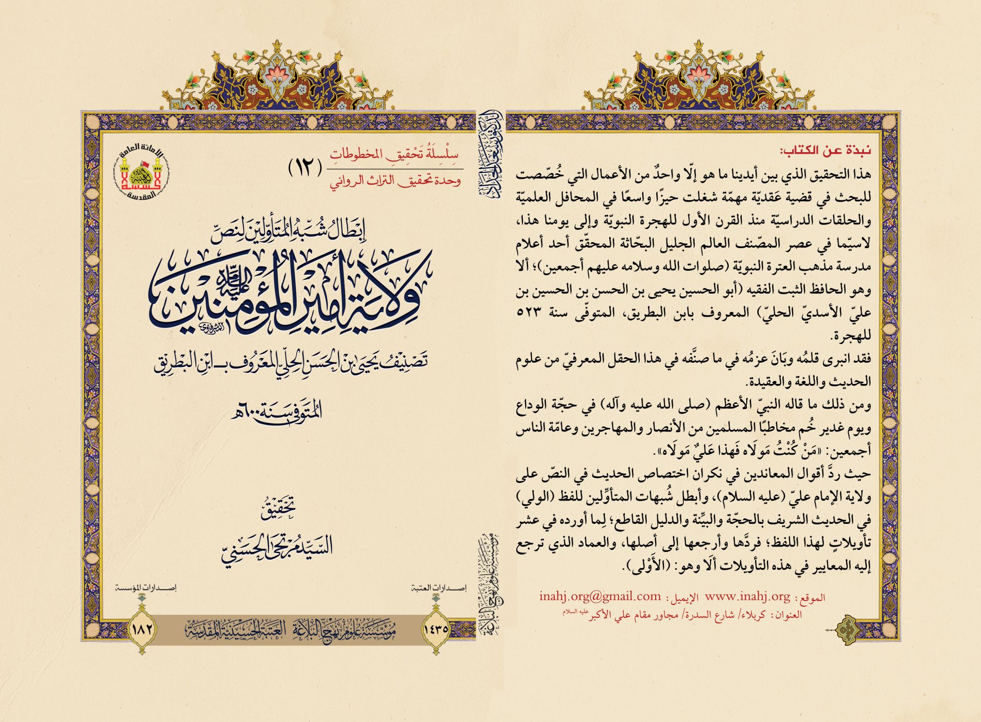 يندرج هذا المؤلَّف ضمن سلسلة تحقيق المخطوطات التي تصدر عن مؤسسة علوم نهج البلاغة ...