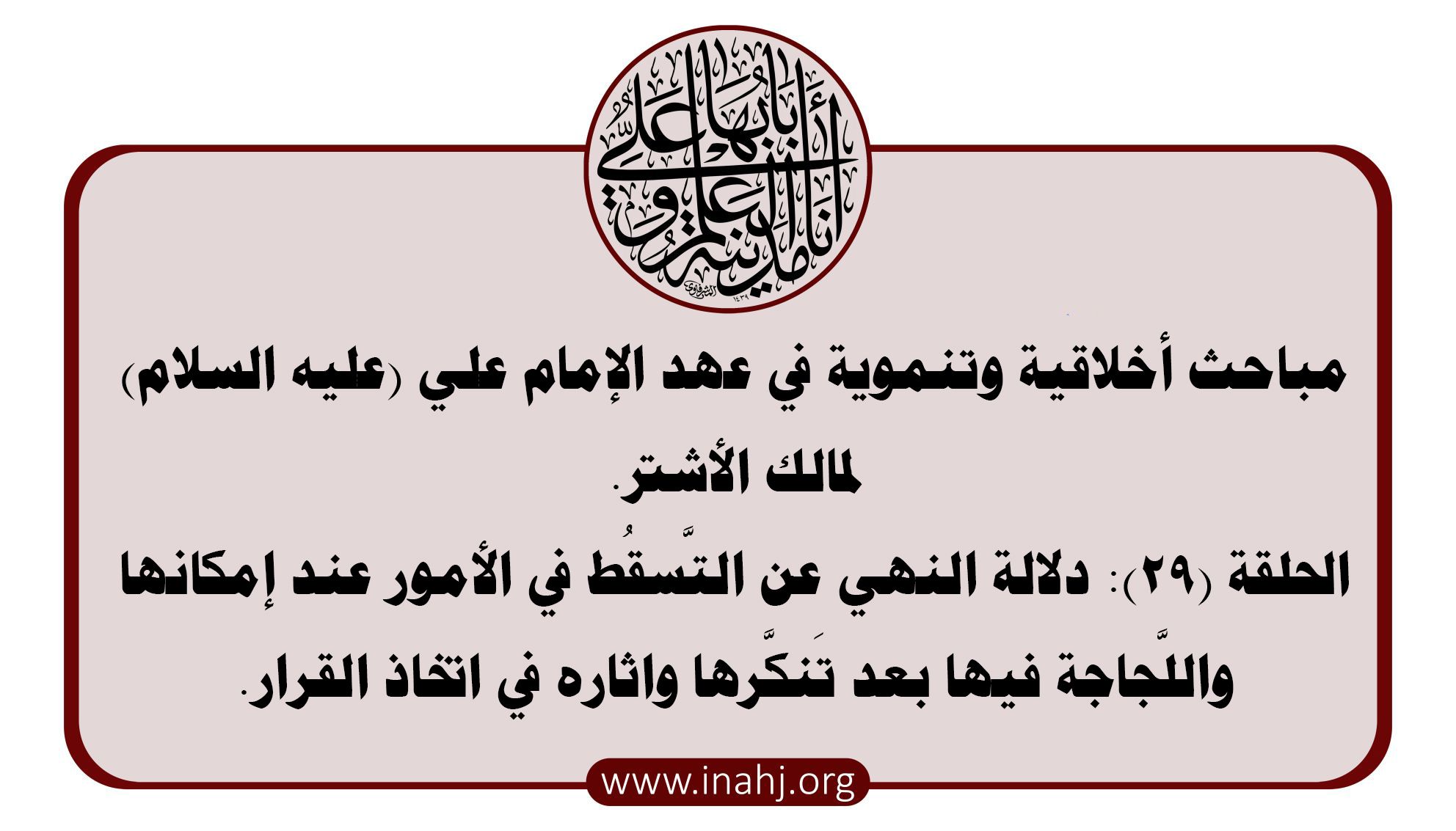 مباحث أخلاقية وتنموية في عهد الإمام علي (عليه السلام) لمالك الأشتر. ال ...