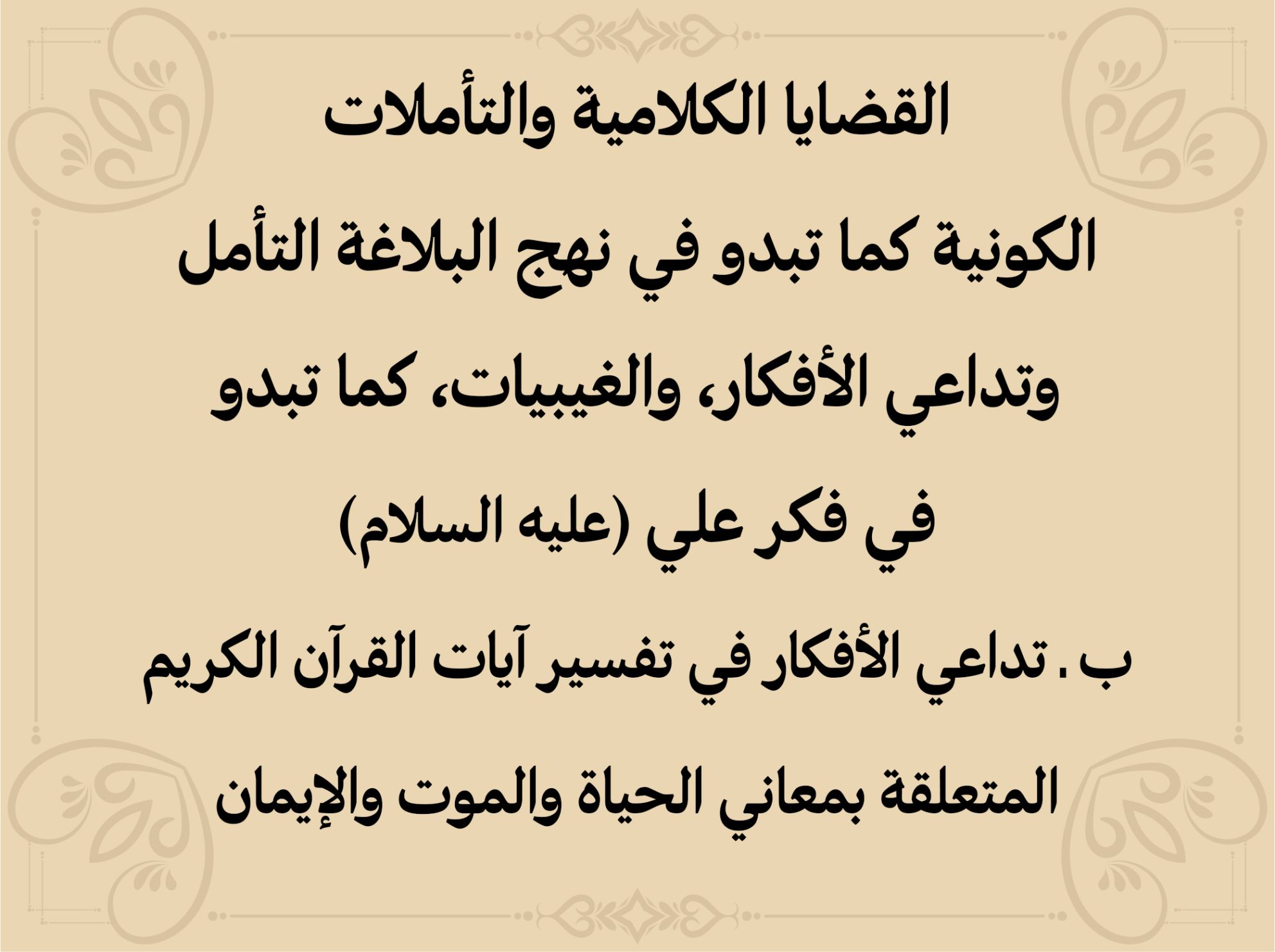 القضايا الكلامية والتأملات الكونية كما تبدو في نهج البلاغة القضايا الك ...
