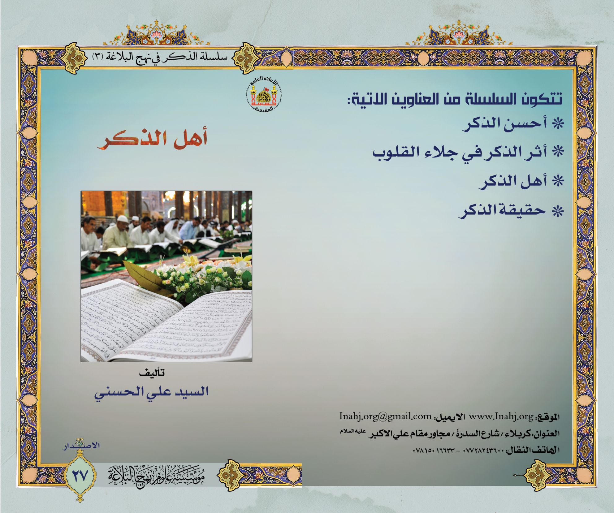 يناقش هذا الكتاب المعنيين في مصطلح (أهل الذكر) انطلاقا من قول أمير المؤمنين (علي ...