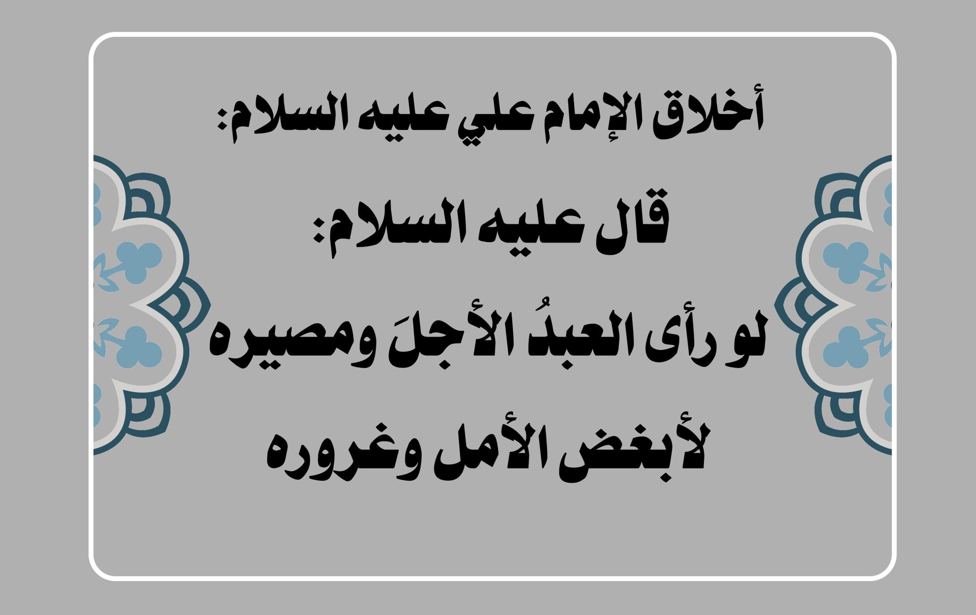 أخلاق الإمام علي عليه السلام: قال عليه السلام: لو رأى العبدُ الأجلَ ومصيره لأبغض الأمل وغروره
